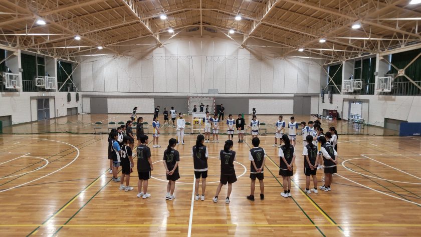 10月25日(土)奥中学校と合同練習・試合を行いました。体幹トレーニング・ドロップ姿勢のコーディネーション・2ボール・タイミングドリル・2on2のピック&ロールの練習を一緒に行いました。奥中学校の部員が、4月29日(祝)に行った前回の合同練習が楽しく、本校の部員達が丁寧にアドバイスをしながら練習を教えてくれたことが嬉しかったとのことで、また、来校をして頂きました。本校バスケ部にとっても10月28日(火)に行われる一商スポーツスクール(小学生対象)に繋がっていく経験をさせてもらいました。ありがとうございました。合同練習や練習試合の希望がありましたら、顧問(百瀬)までご連絡ください。