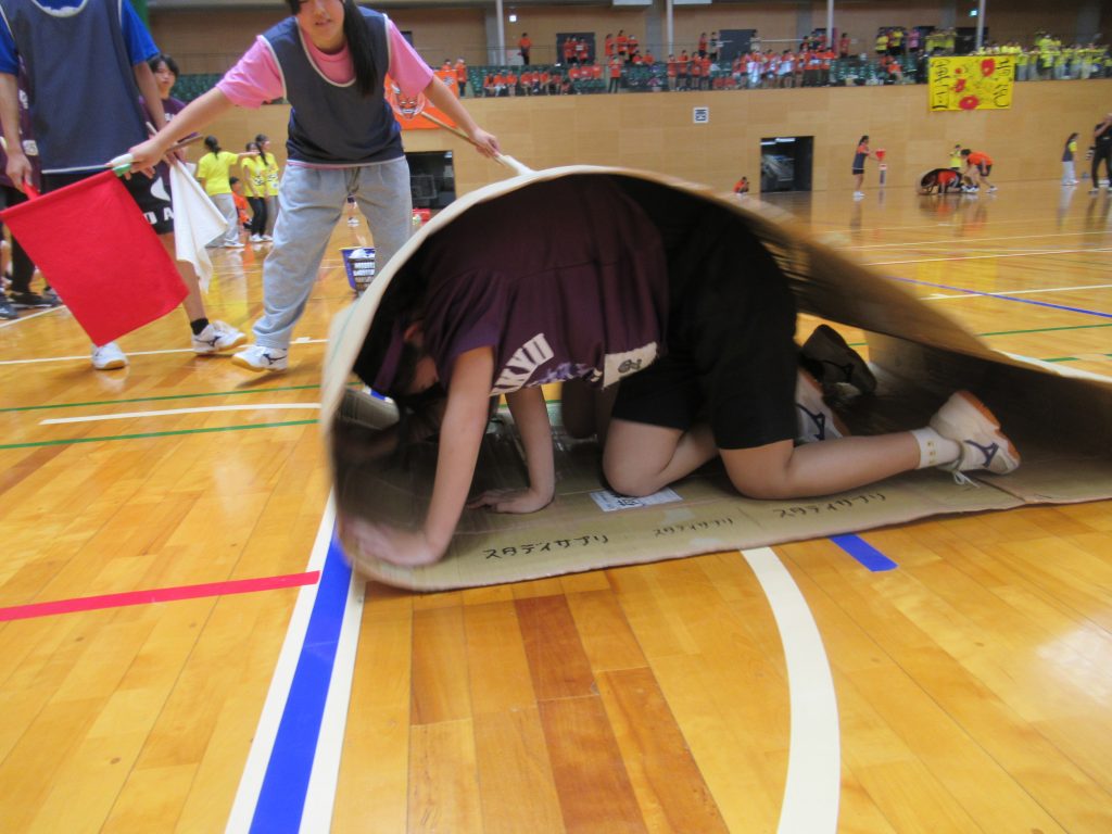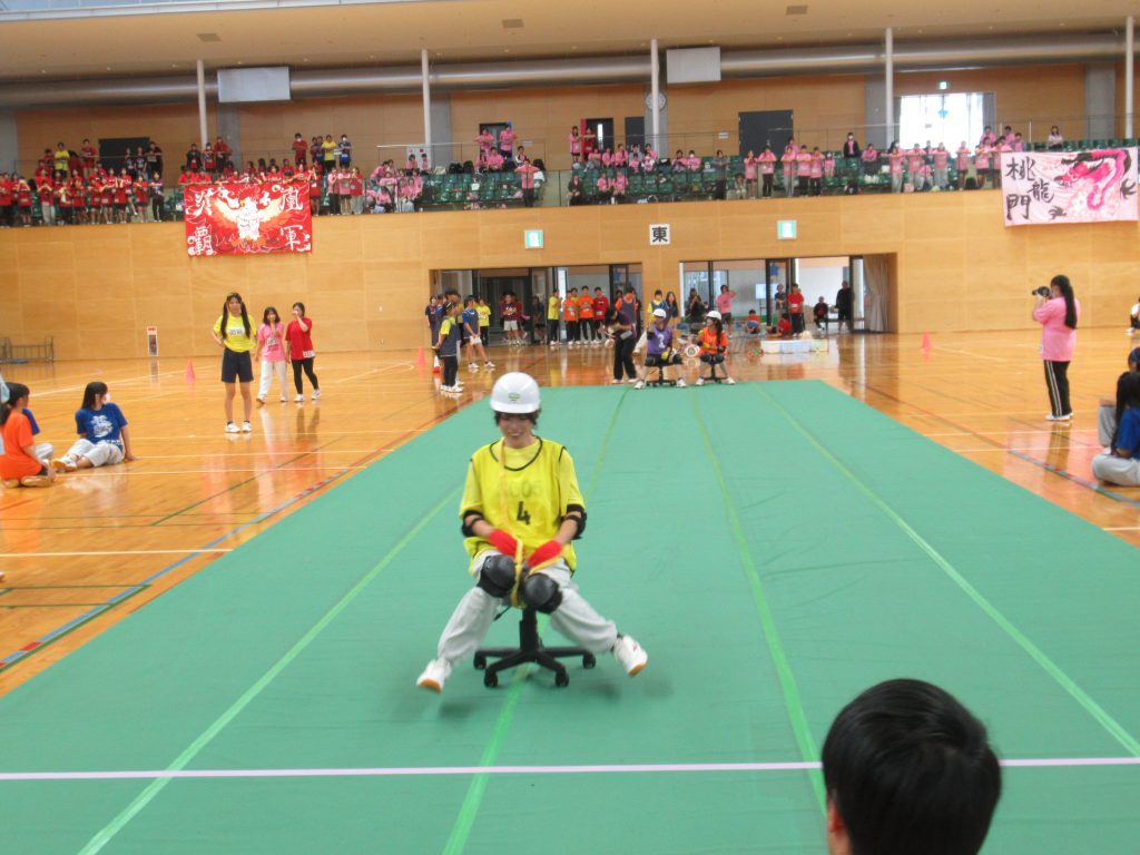 毎年9月下旬~10月上旬に一商祭のスタートを飾る、体育祭を実施しています。一宮市総合体育館を借り、快適な環境の中で競技を楽しめています。近年は、スポーツビジネスの生徒が新たに考えた競技を取り入れ、当日の運営も生徒中心に行っています。138メートルを走る「いちのみやリレー」や足についた風船を守りながらも敵チームの風船を割る「Smash Pop a Ballon」、「蝶の一生」という名で柔らかい棒の上に卵に見立てたボールを置きながら運び、次は段ボールに入り前進するさなぎレース、栄養(先生)を運んで蝶(生徒)が羽ばたくというストリー性のあるユニークな競技で楽しみ、競い合います。ビジネスを学ぶ一商生として、運営を円滑に進め、安心安全に競技を進めることの難しさと、計画性の重要さを学んでいます。体育祭でも「楽しませることを楽しむ」をテーマに毎年、全校生徒が活躍できる競技で大変盛り上がります。