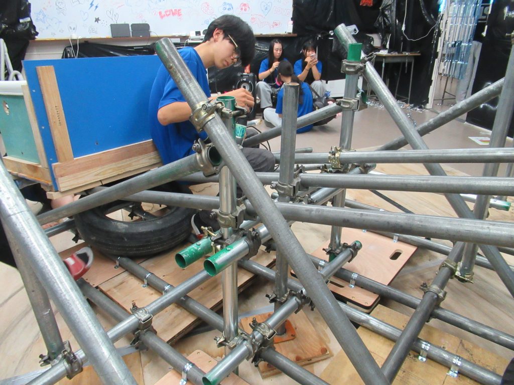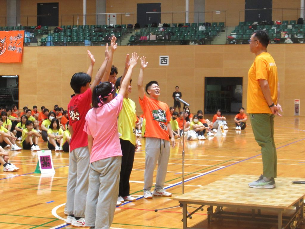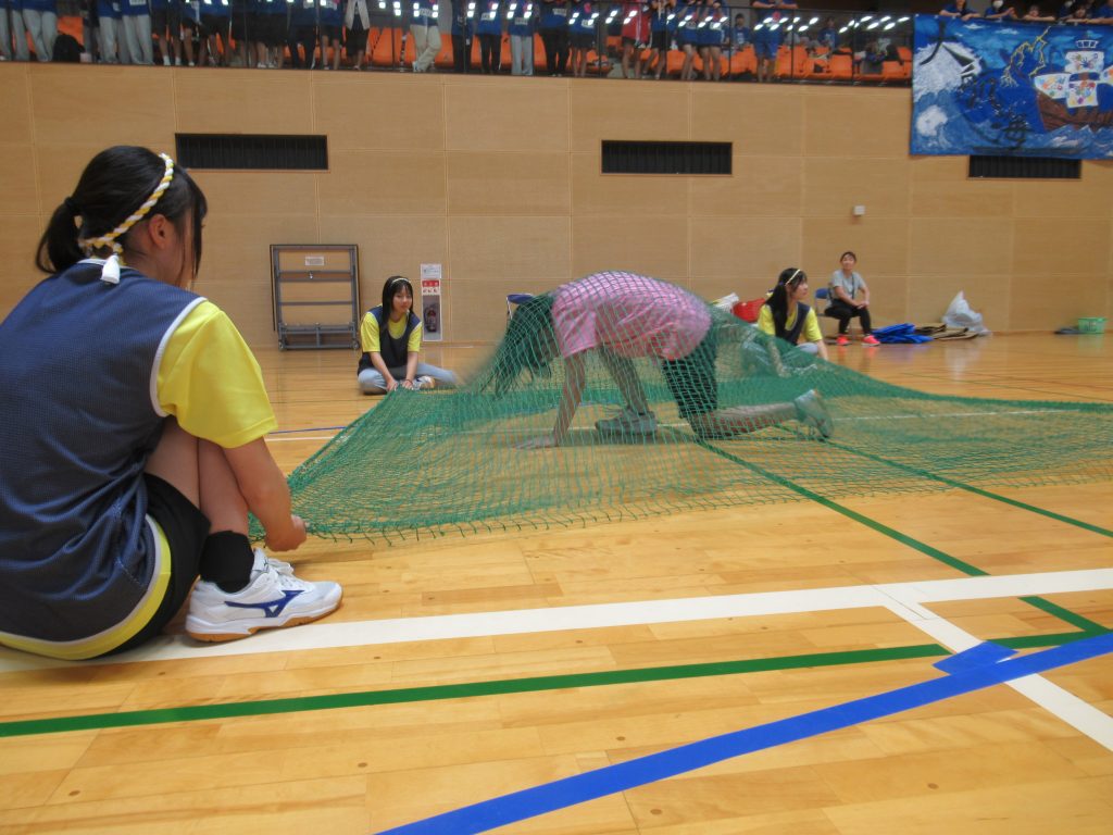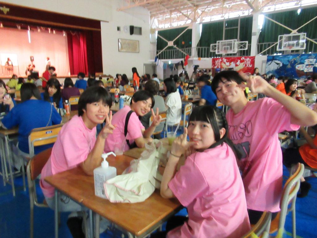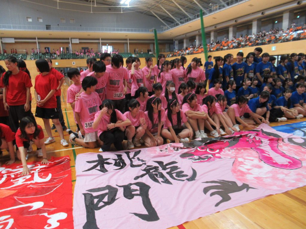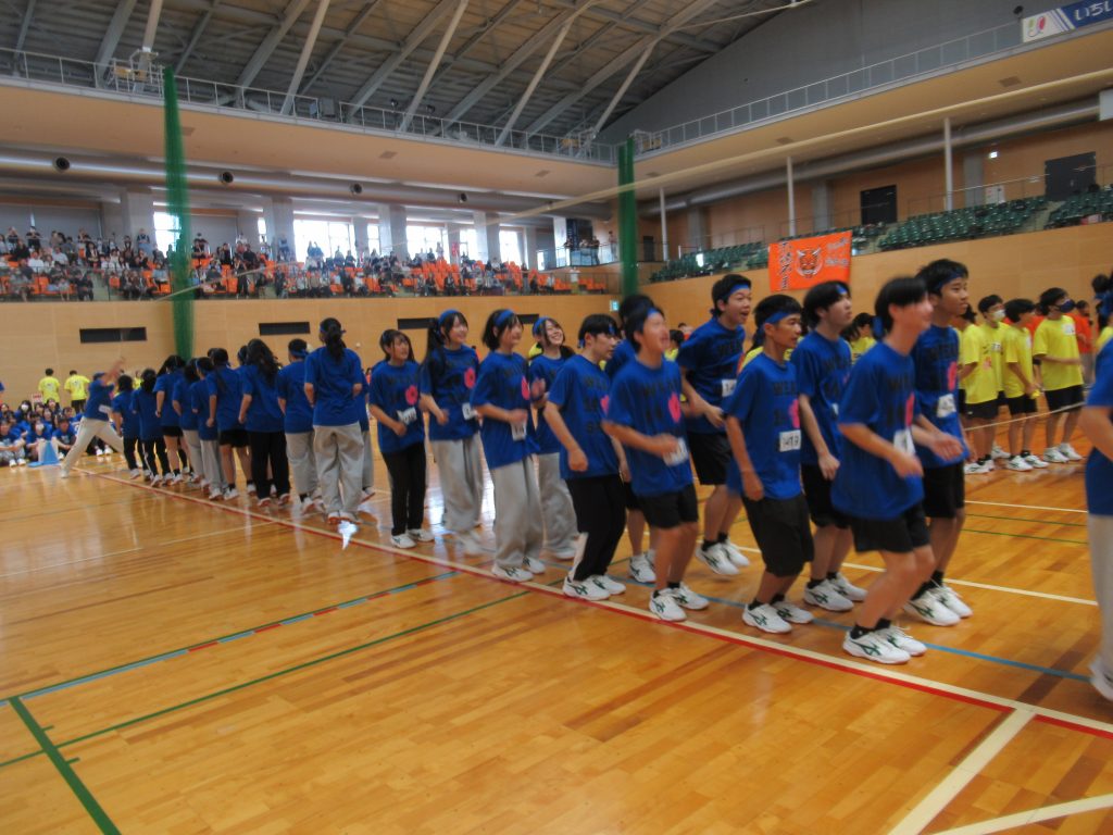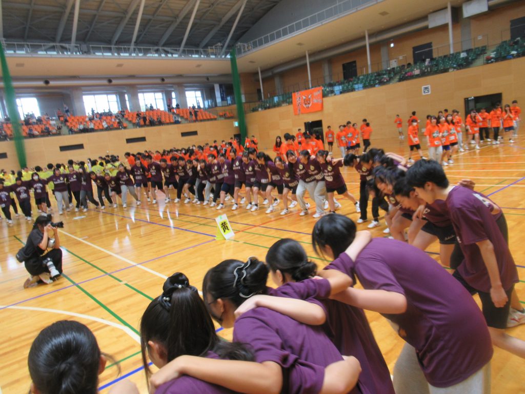 民踊大会はクラスで民謡の曲を決め、振り付けや衣装を一からすべて考え演舞します。毎年、5月末~6月の上旬に開催していますのでクラスにとって初めての学校行事です。一致団結して力強く演舞する姿は圧巻です。そして、3年生の演舞は毎年完成度が高く、演舞終了後には大きな拍手が九品地競技場に響き渡ります。