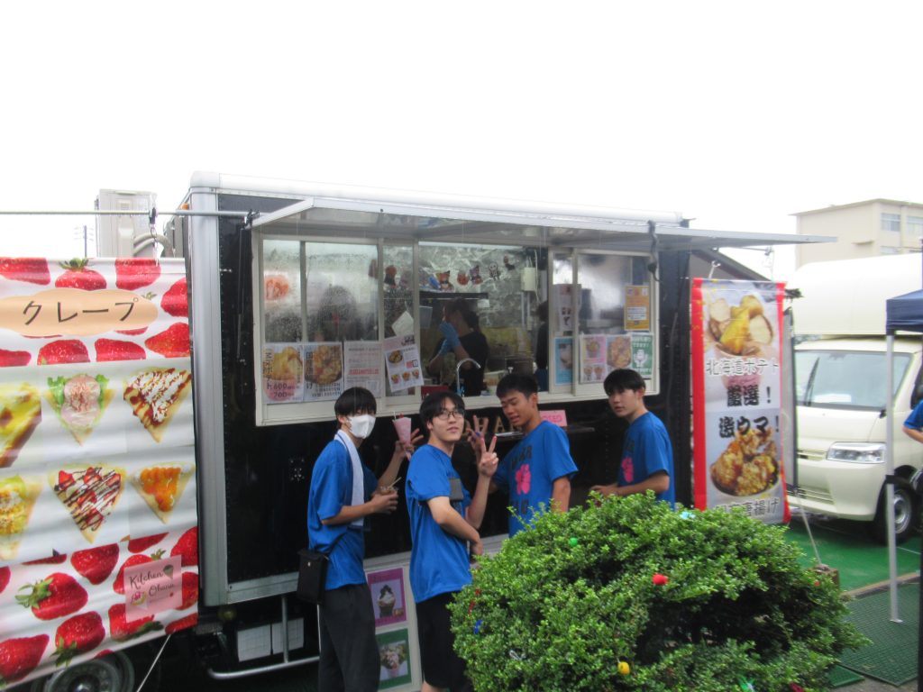毎年10月上旬に2日間「一商フェス」を実施しています。テーマは「楽しませることを楽しむ」です。ビジネスの視点から、ゲストの方々に満足していただける企画を考えています。2日目は地域の方々を招いて、各群団のアトラクション部門、アクティビティ部門、展示部門の企画を楽しんでもらいます。また、一日中キッチンカーには多くの人が集まり、賑わいを見せています。各群団だけでなく部活動や総合的な探究の時間で考えた企画もあり、令和7年度は観光ビジネスの生徒を中心に「一商マルシェ」を実施しました。地元地域で親しまれている事業所さんを招き、体育館で商品販売をしていただきました。各企画のクオリティは年々上がっており、学校中が地域と一体になり、大変盛り上がる学校行事となっています。